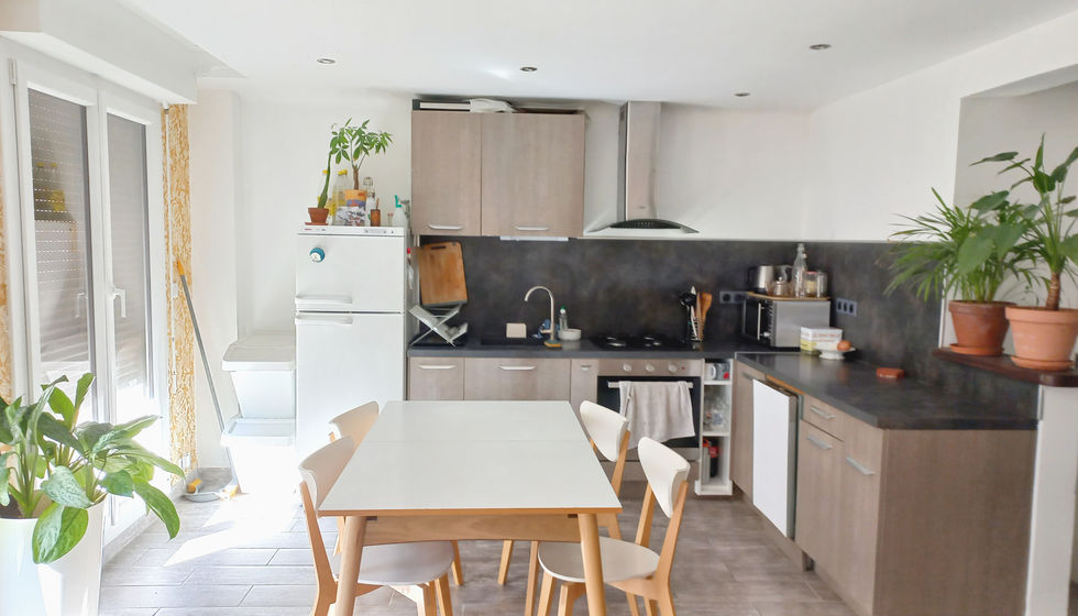 Ici le projet était de revoir un logement de particulier afin d'en faire sa résidence pricipal à son goût, c'est à dire plus zen et végétaliser tout en gardant du caractère avec des couleurs solaires.